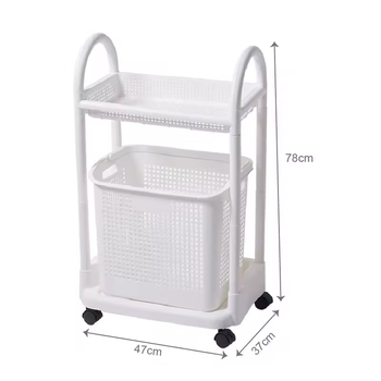 Cesta de lavandería de plástico de 2 capas para el hogar de alta calidad, almacenamiento barato con diseño colgante y ruedas para ropa, Material PP